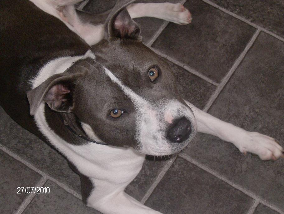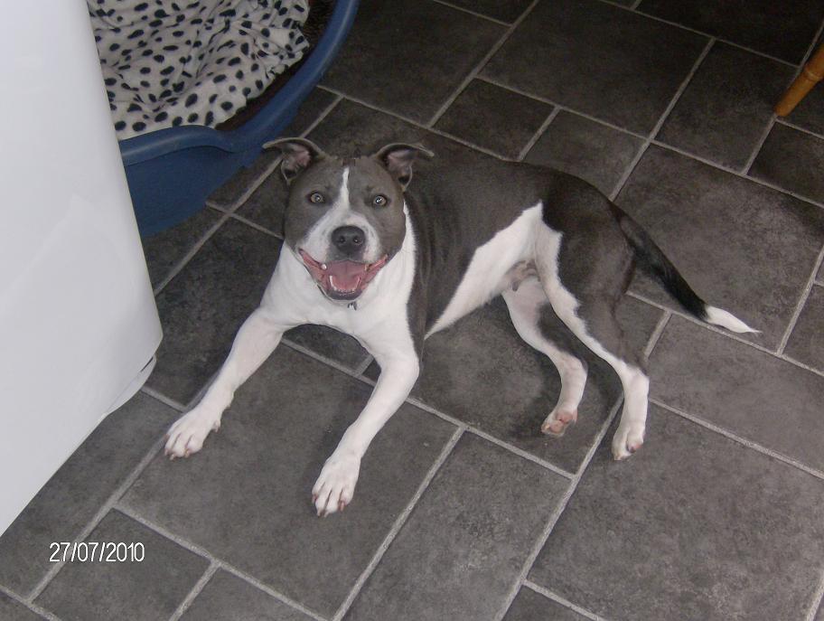 MemberWell after much thought about do we wait and get a puppy……..this gorgous blue and white 15 month old Staffie girl came along ;D Due to unforseen circumstances her owner couldn’t keep her anymore so we have homed her ;D She not been in kennels so she’s been well loved and cared for and is such a good girl! She’s great with the boys and not a problem with the footballs 😉 Great with other dogs 🙂 Got lots of cues in place and is just a little sweetheart :-* She loves to be with us all the time and does bark a little when we leave her on her own but she fine at night ;D